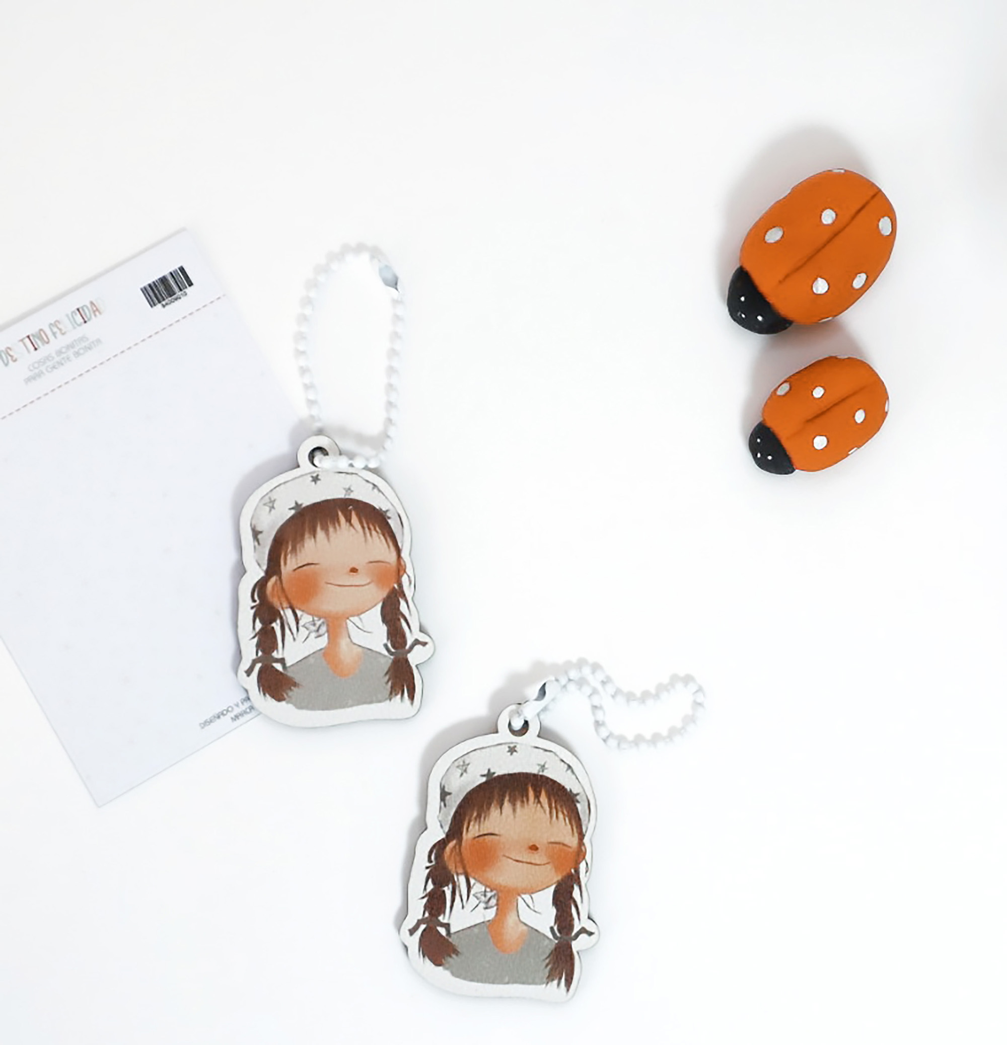 Este colgante de Mariquilla te robará el corazón con su sonrisa. Ideal para darle un toque divertido y único a los lomos de tus álbumes, a tu bolso o cualquier espacio que quieras decorar con una dosis de ternura. Fabricado con materiales resistentes y con un acabado en colores suaves. Diseño exclusivo de Mariquilla