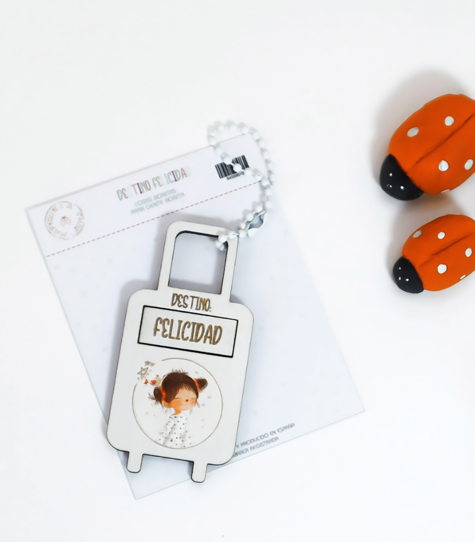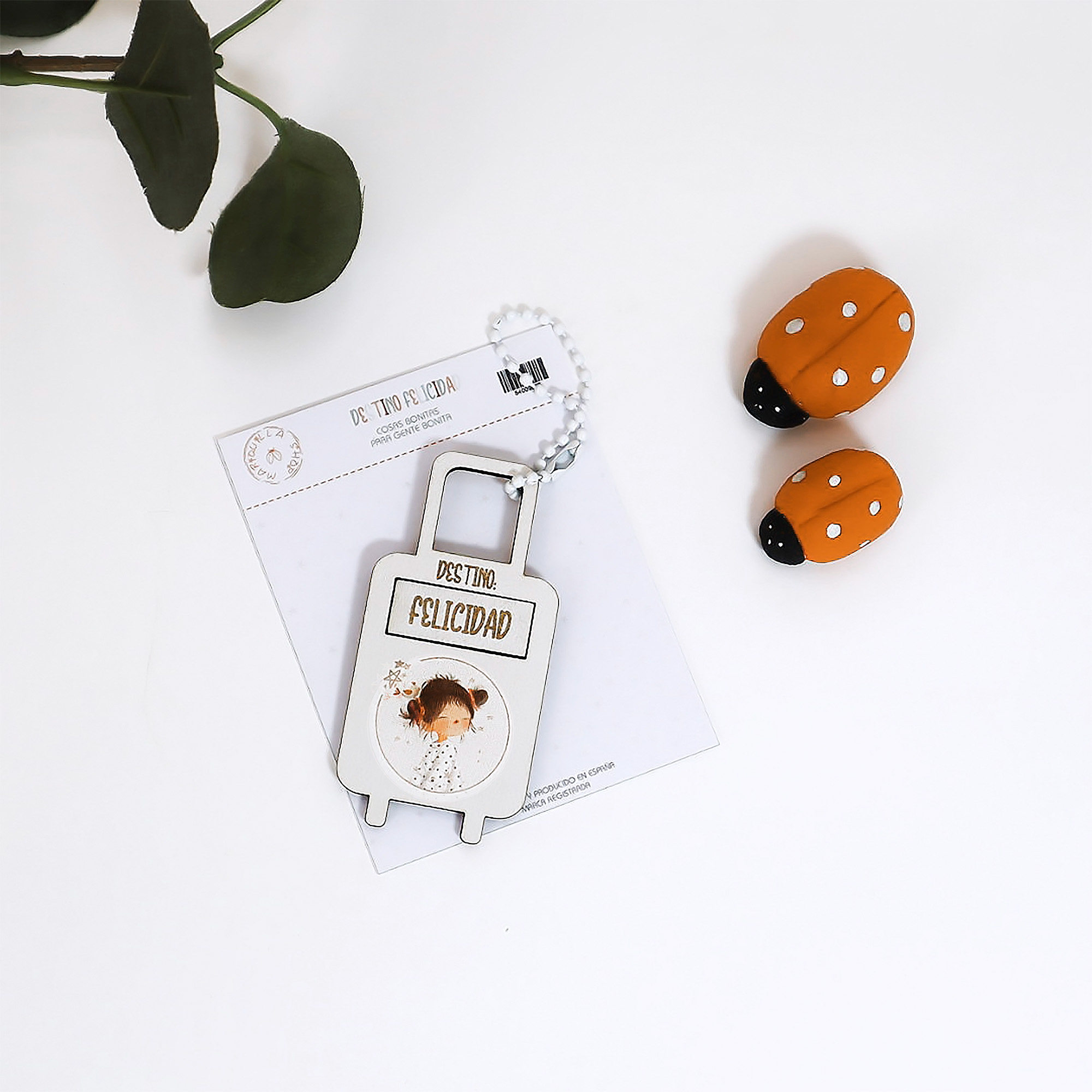 Sé que amas viajar y quieres que eso se refleje en tu creatividad. El colgante de maleta trolley  con acabado en madera y sublimación le da ese toque aventurero