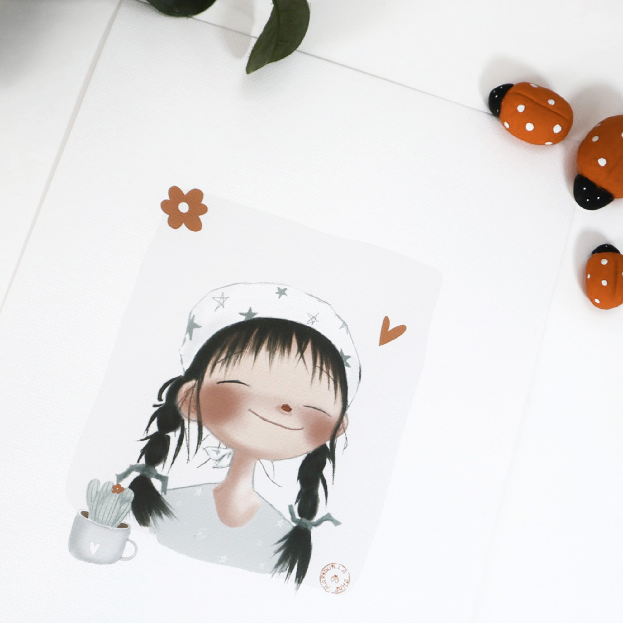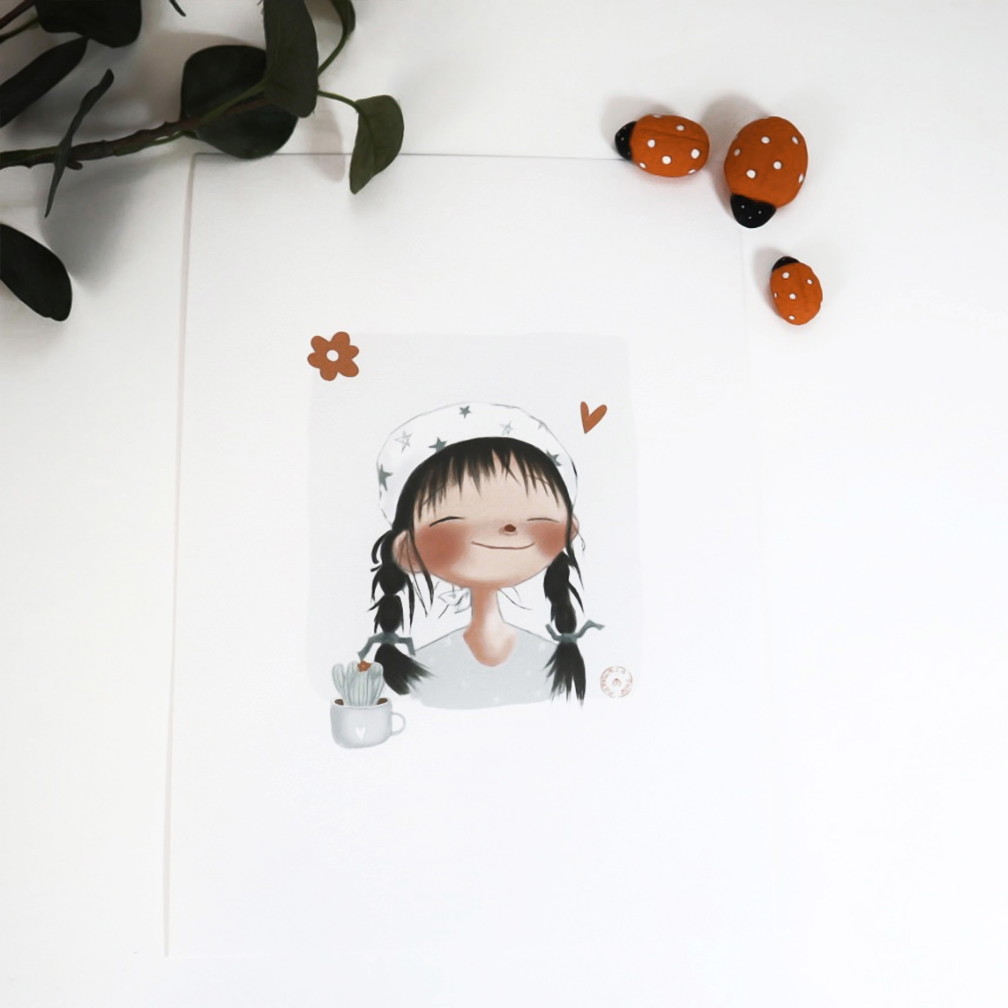 Lámina en formato A4, impresa con tinta de alta calidad sobre un papel de acuarela de 250 gramos.