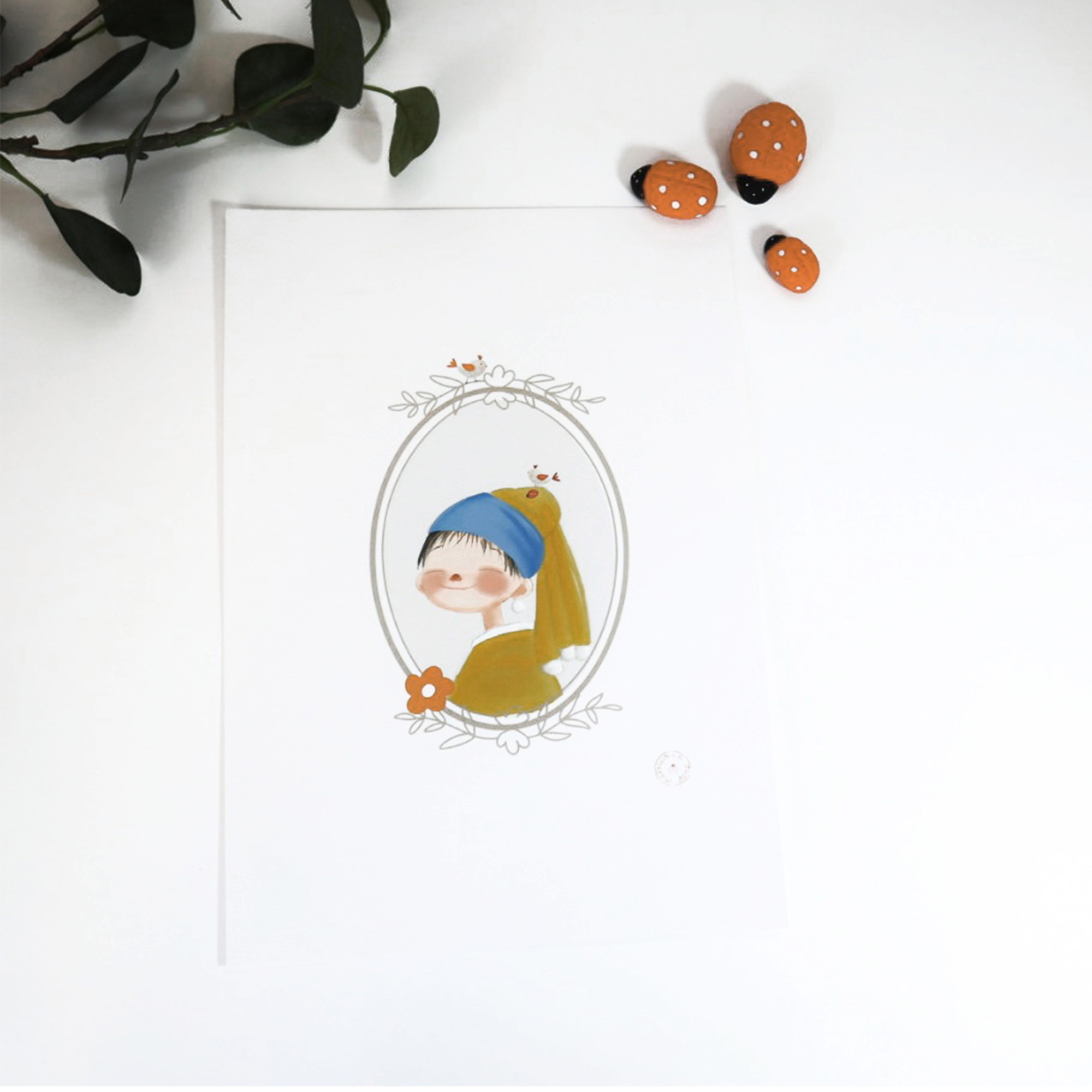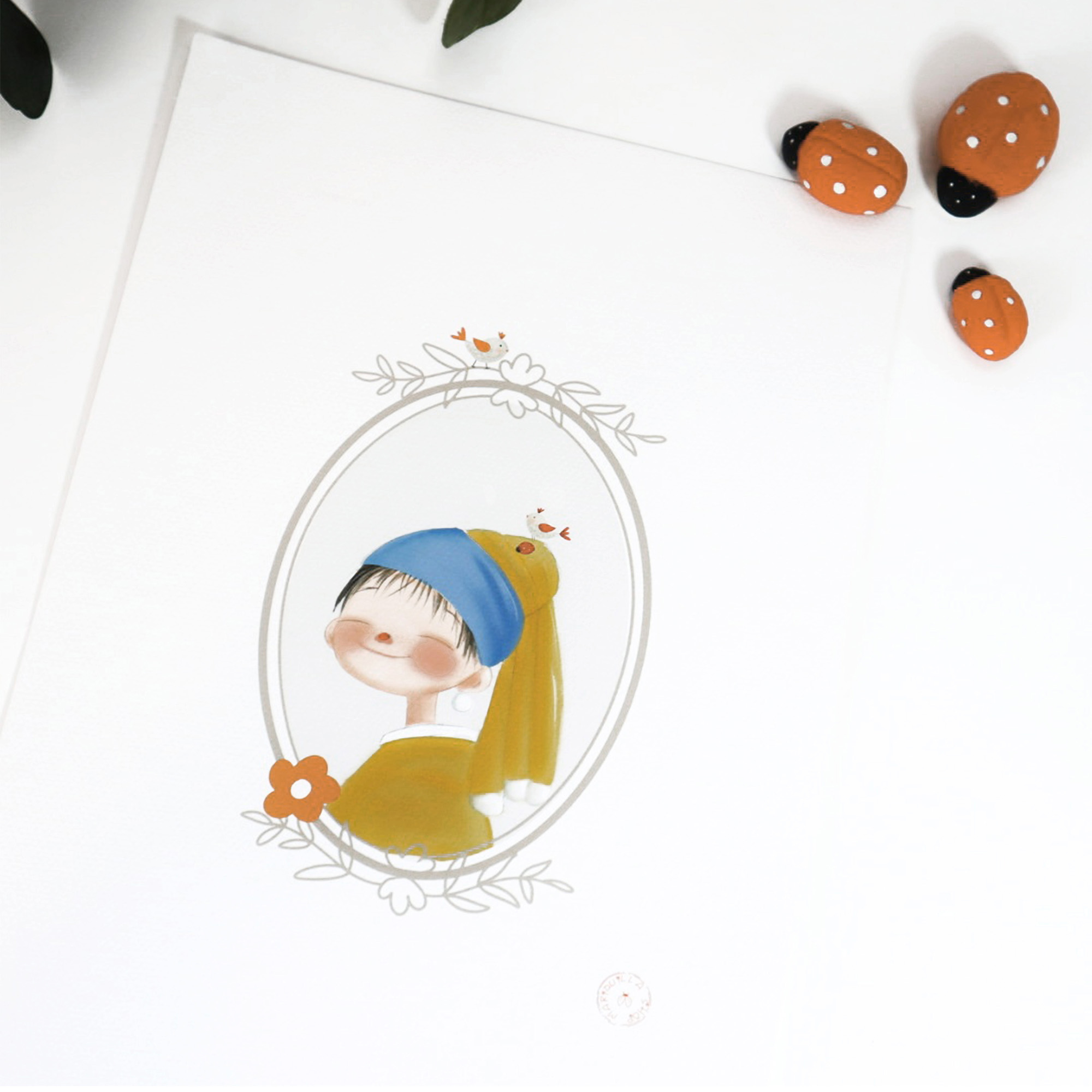 Inspirada en el icónico retrato de La joven de la perla, esta tierna versión te robará el corazón con su sonrisa adorable y su toque único.