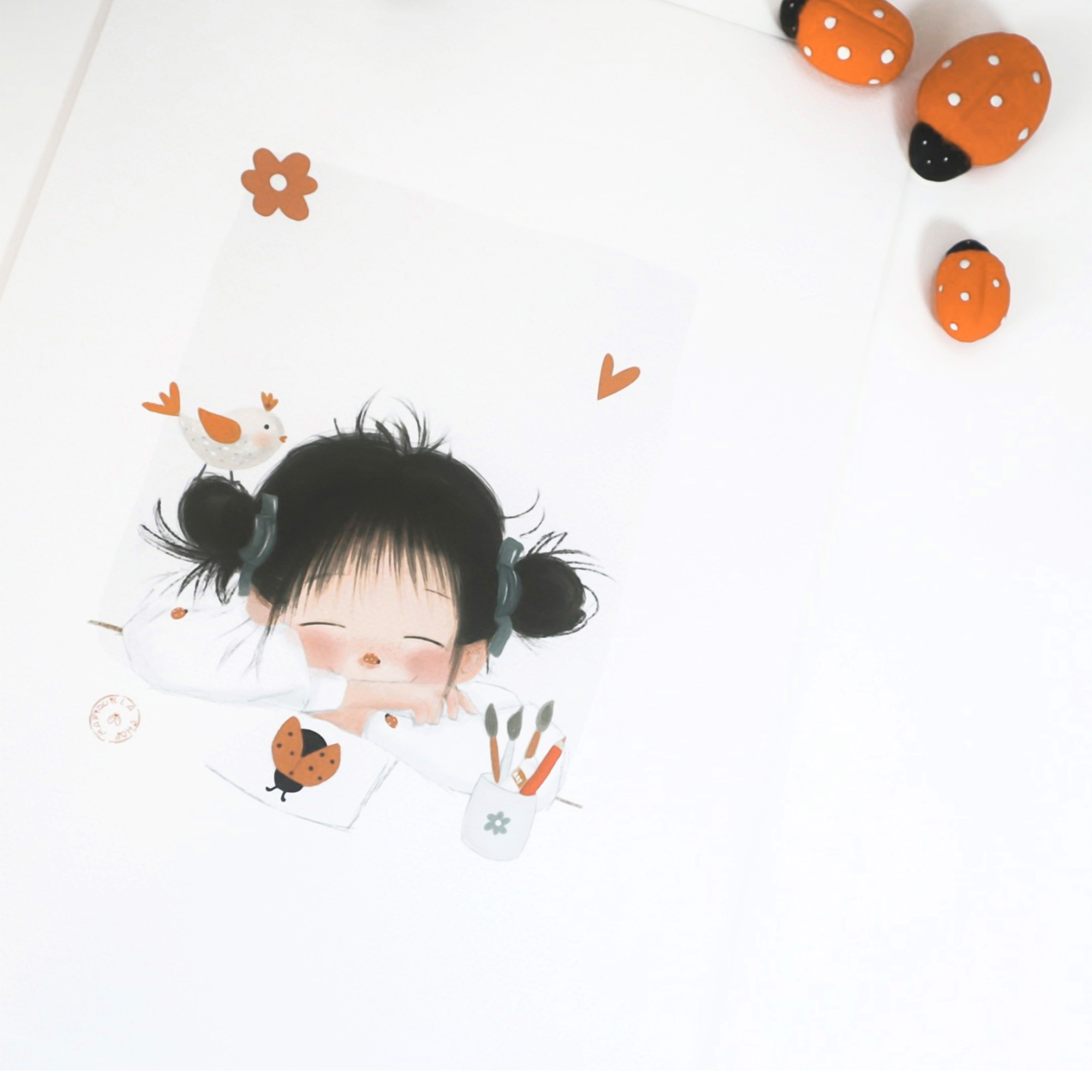 Si el pincel es tu varita mágica y cada trazo te lleva a tu propio universo como le pasa a Mariquilla, esta es tu lámina, con su tierna expresión de cuando era más pequeña y comenzó a dibujar.