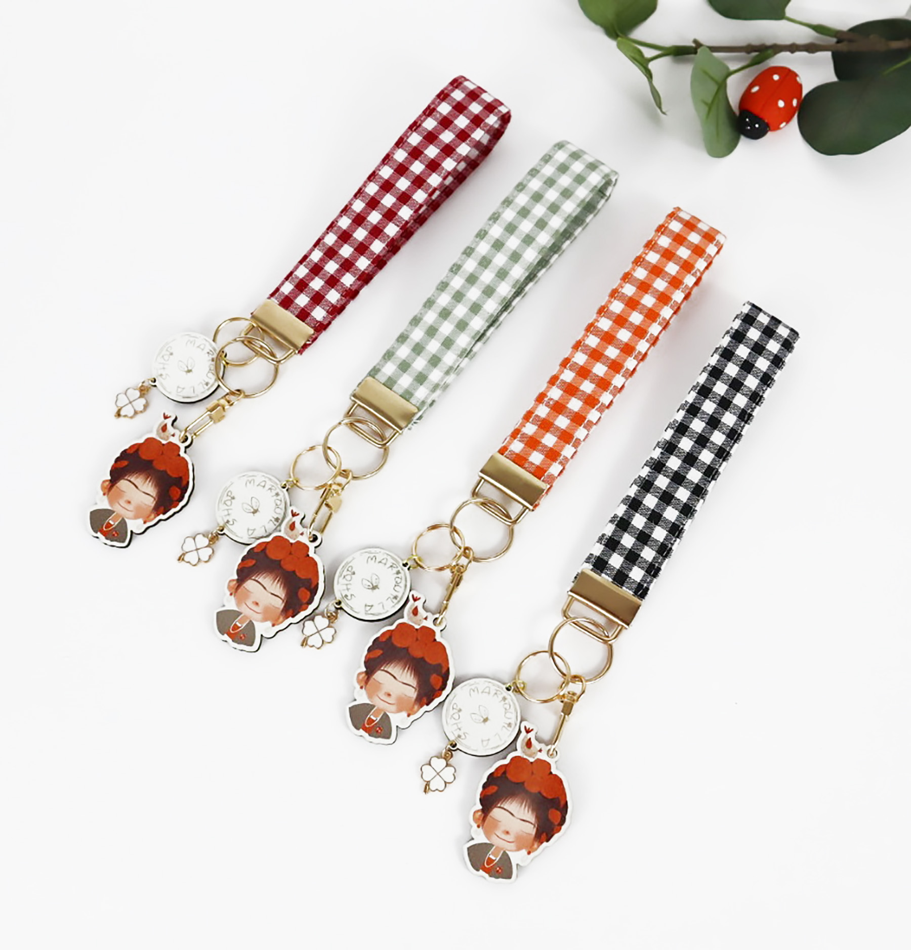 Con el encanto de Mariquilla convertida en Frida,  estos llaveros realizados a mano, son geniales para llevar tus llaves o simplemente para llevarlos de colgante en el bolso.