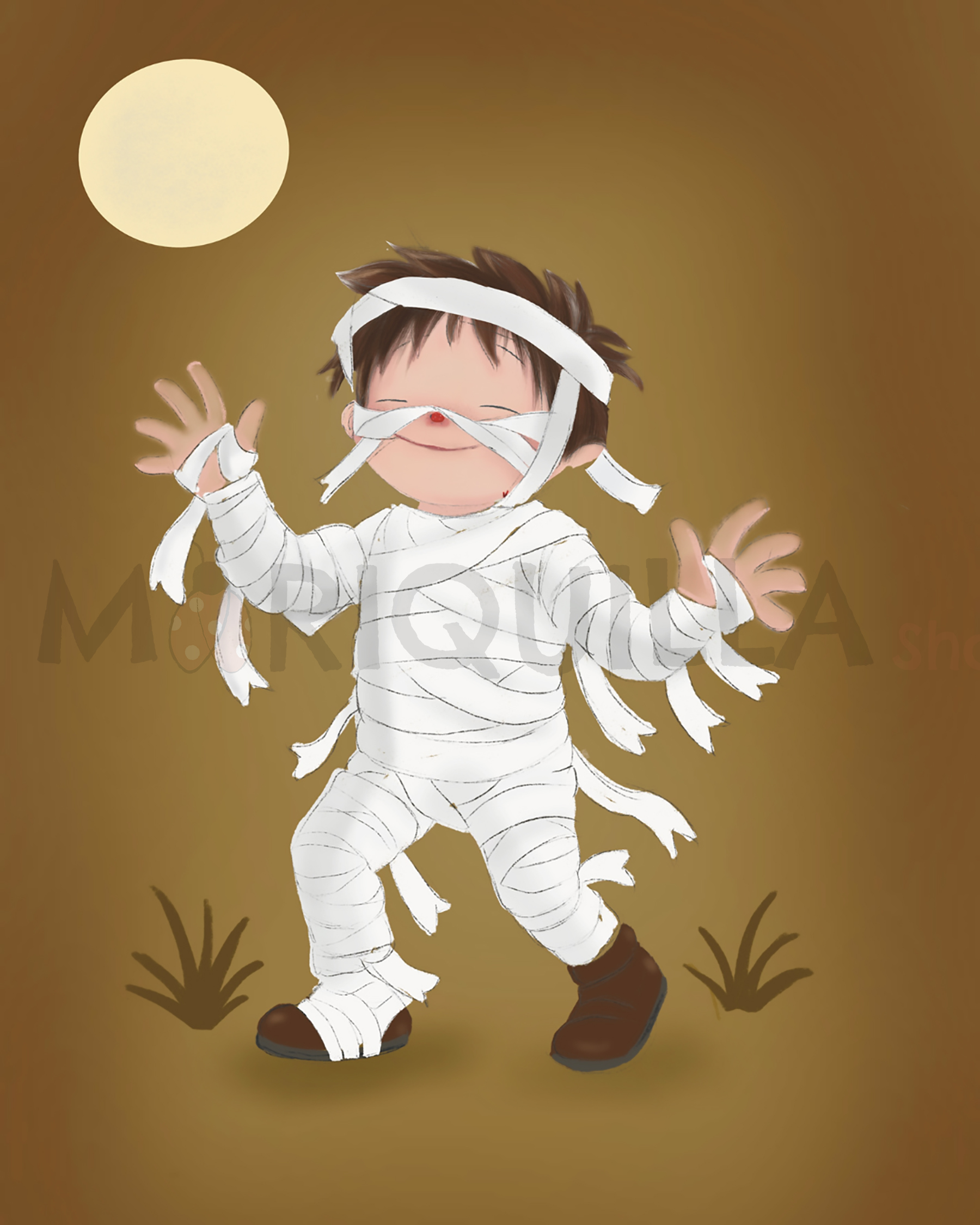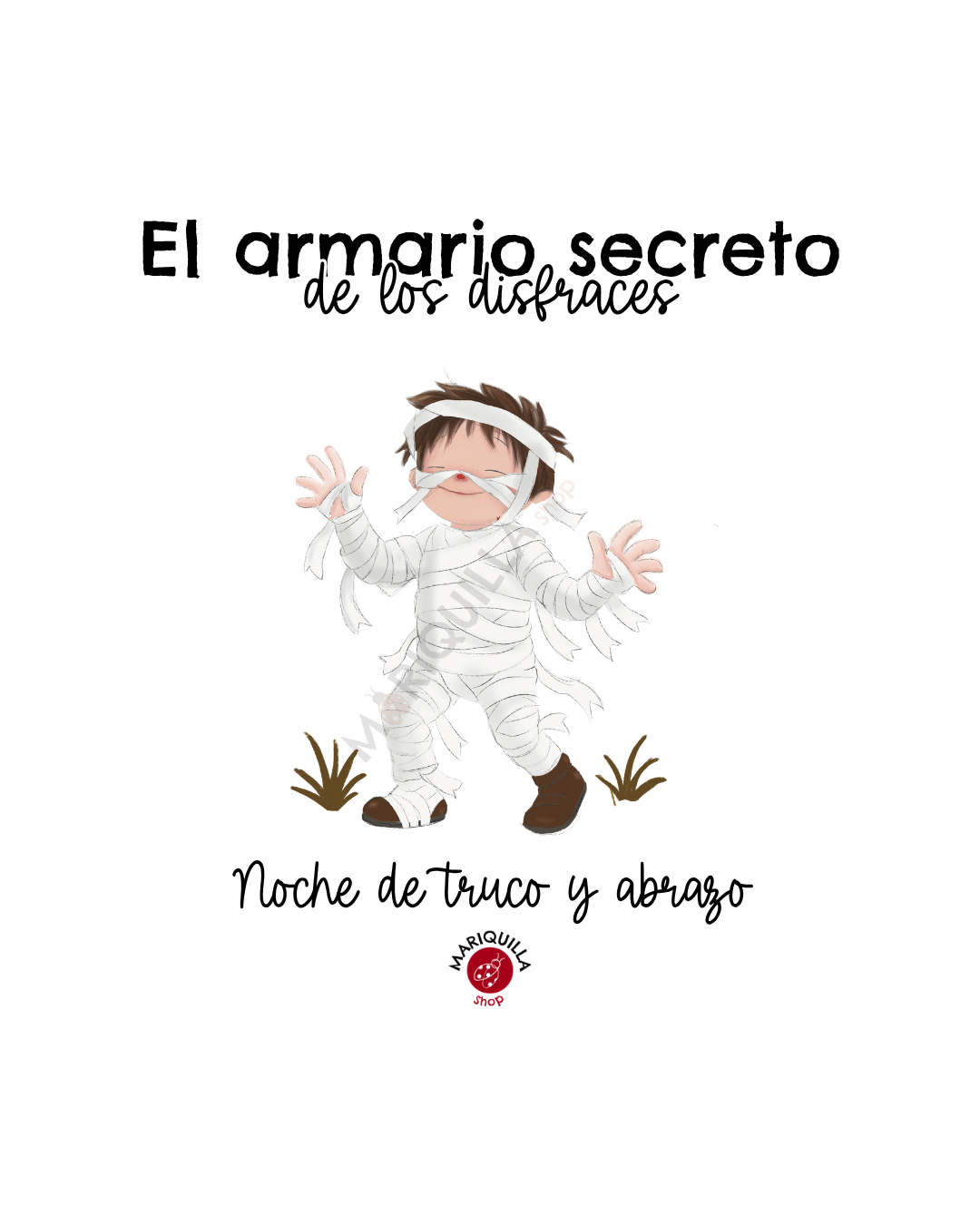 En una esquina del Armario secreto de los disfraces, Nico Nariz Colorada se ha enredado en vendas y le ha dado un ataque de risa. Esta vez se convierte en una momia muy especial: más tierna que temible, más abrazable que aterradora.