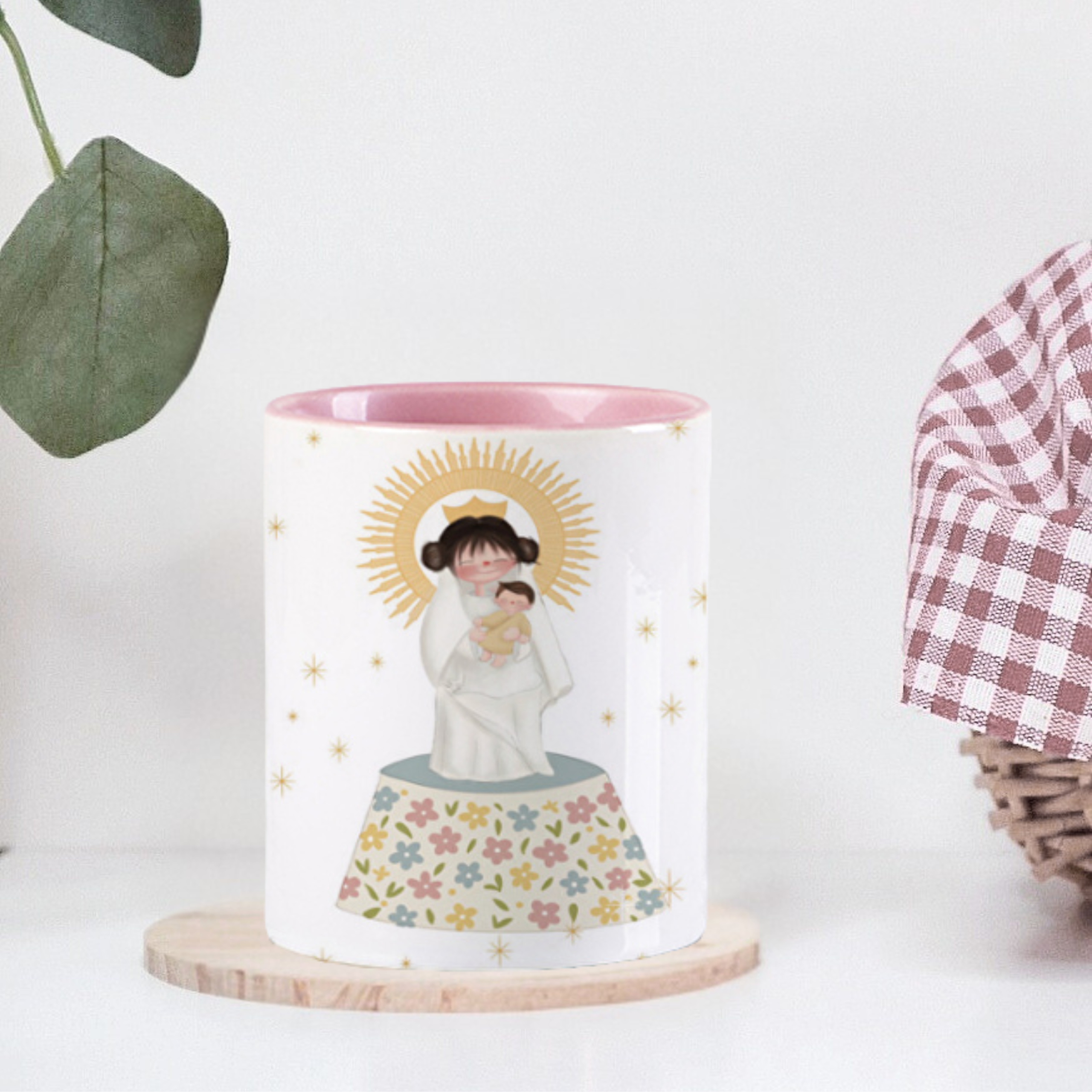 La Virgen del Pilar en una ilustración dulce y especial que convierte esta taza en un recuerdo único de Zaragoza y de Aragón.