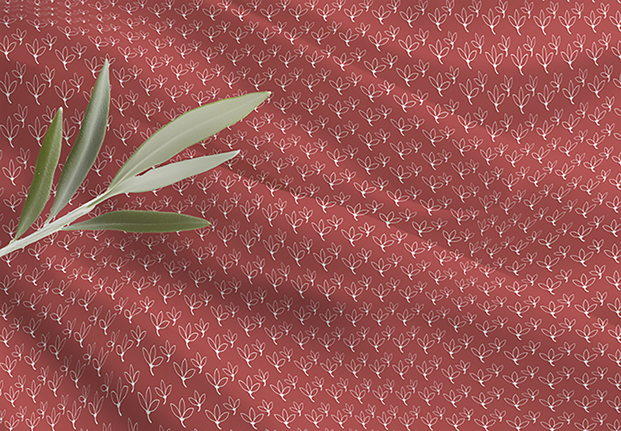 Con un color rojo coral y unas pequeñas hojas blancas esta tela es perfecta para combinar con todas las demás telas de la colección.