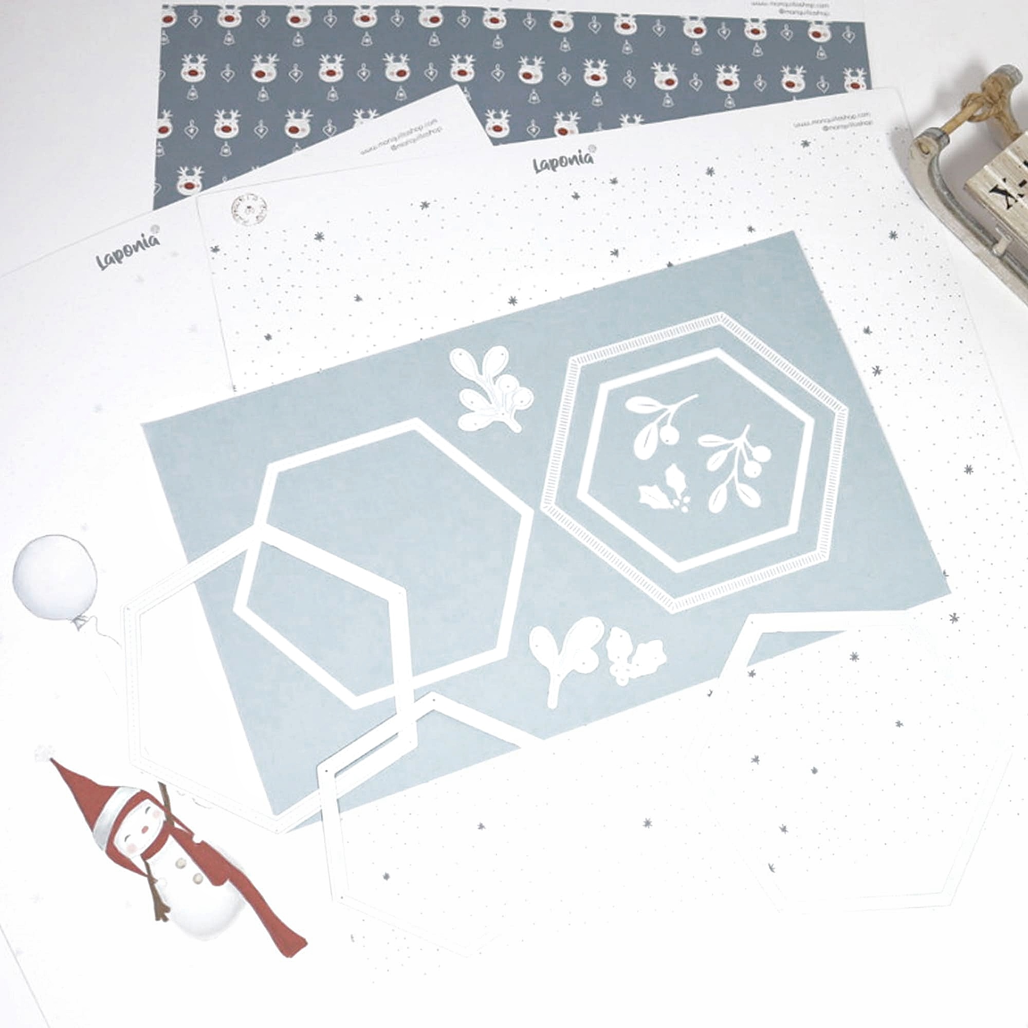 Os vais a enamorar de este set de troqueles de marcos exagonales, incluye 3 marcos con diferentes tamaños y terminación, desde el embosado hasta el punteado y el liso. Les acompaña una decoración de hojas de acebo que darán la terminación perfecta para decorarlos.
